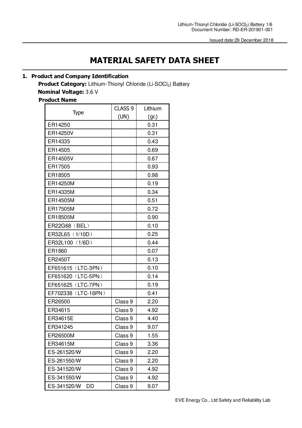 Material Safety Datasheet
