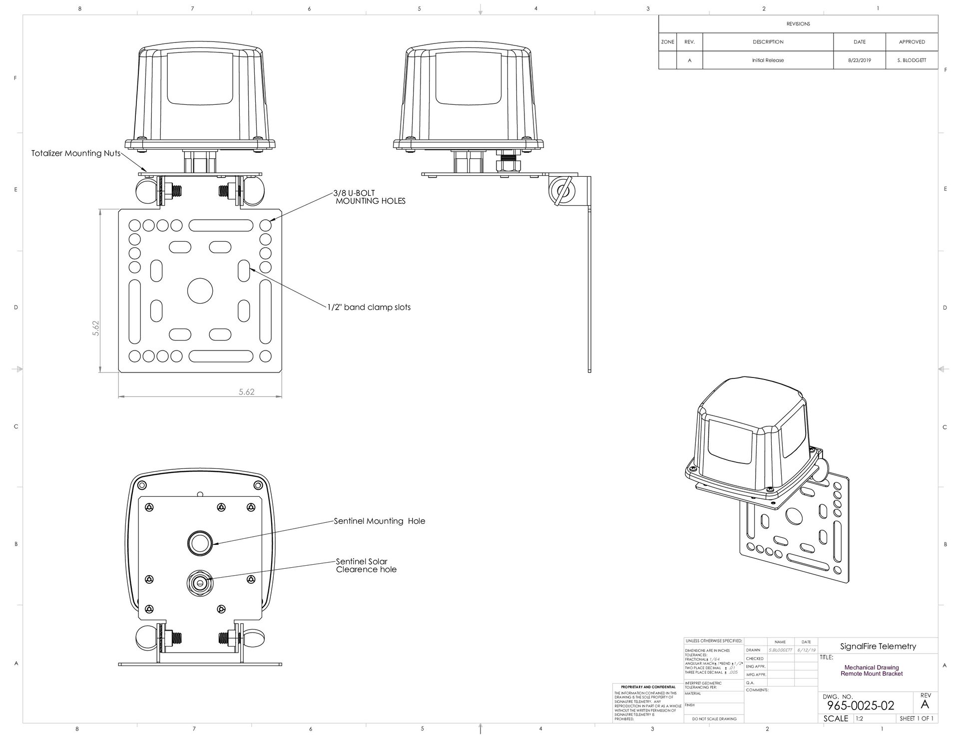 Sentinel/RANGER Remote Mount Bracket Dimensional Drawing