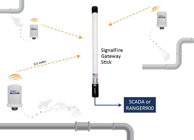 It monitors the presence of a gas and transmits the measurement wirelessly to a SignalFire Gateway or a RANGER900. The measurements are integrated in a supervisory system using Modbus communication at the gateway. When using the RANGER900, the measurement are transmitted to the SignalFire Cloud using LTE-M CAT M1 / NB-IoT cellular connectivity.